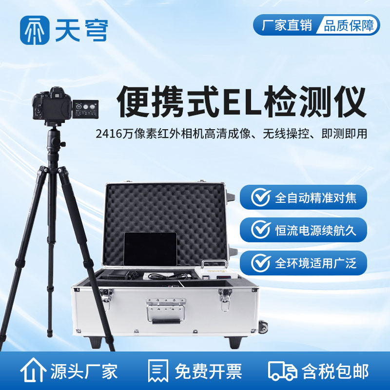 组件el测试仪搭载2416万级红外相机可有效帮助用户发现光伏板内部直流质量问题,设备配套储能电源与Wi-Fi无线控制模块,现场的检测使用更为便捷快速。