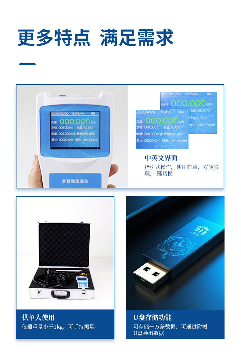 【产品简介】一、多普勒流速仪产品简介多普勒流速仪是应用于河流、明渠及管道等工况的流速流量检测仪器。其采用超声波探测技术,测量精度高、稳定性好、受环境因素影响小,无转动件、维护频次低、工作可靠性···