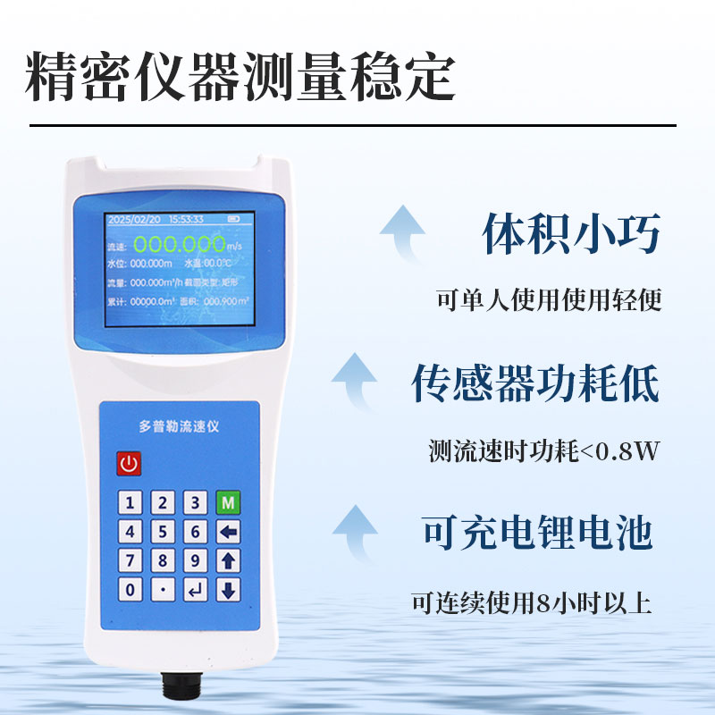 多普勒流速仪是应用于河流、明渠及管道等工况的流速流量检测仪器。其采用超声波探测技术,测量精度高、稳定性好、受环境因素影响小,无转动件、维护频次低、工作可靠性高,是便携流速流量测量的首选产品。
