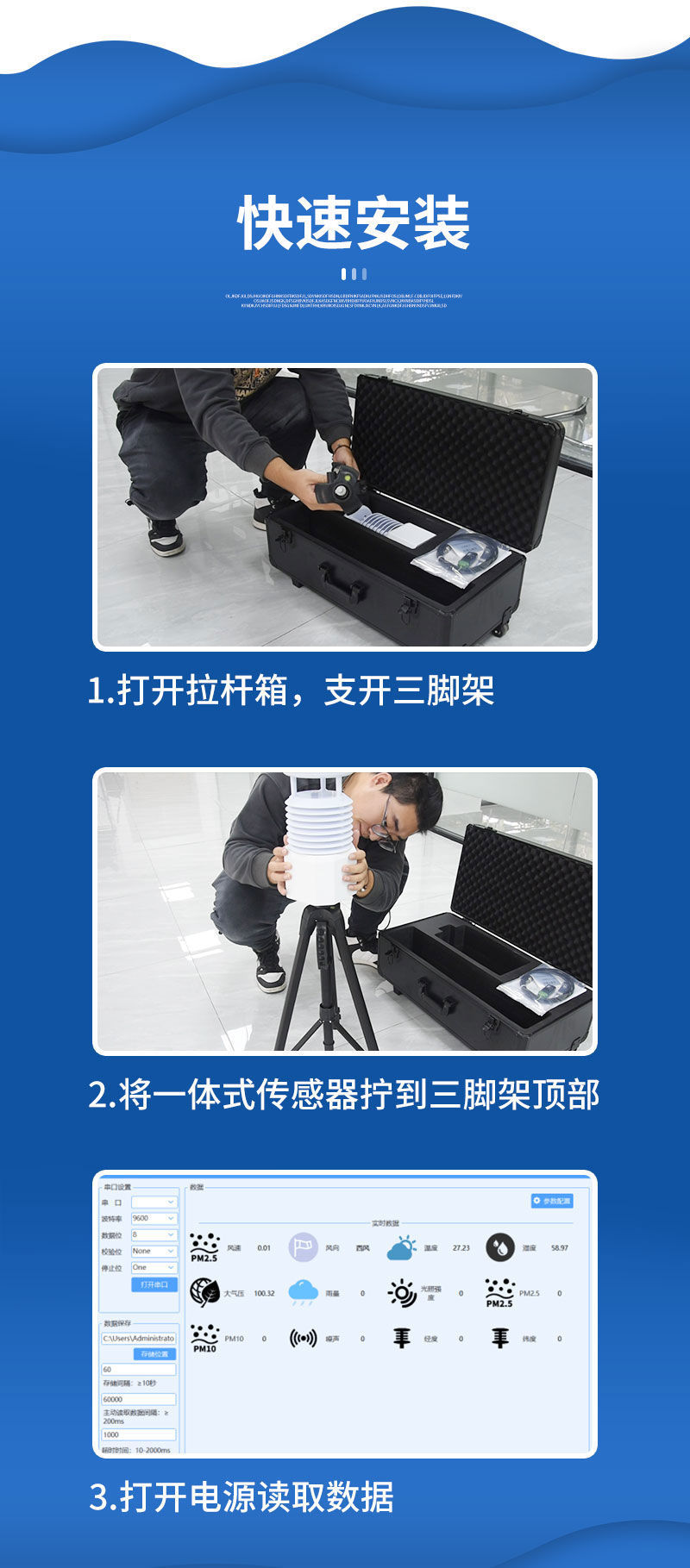 该设备支持有线、蓝牙、GPRS等传输方式,免调试,可快速布置,适用于各类应急气象短期观测、移动气象监测等气象数据的获取。广泛运用于气象、农林、环保、海洋、机场、港口、科学考察、校园教育等领域