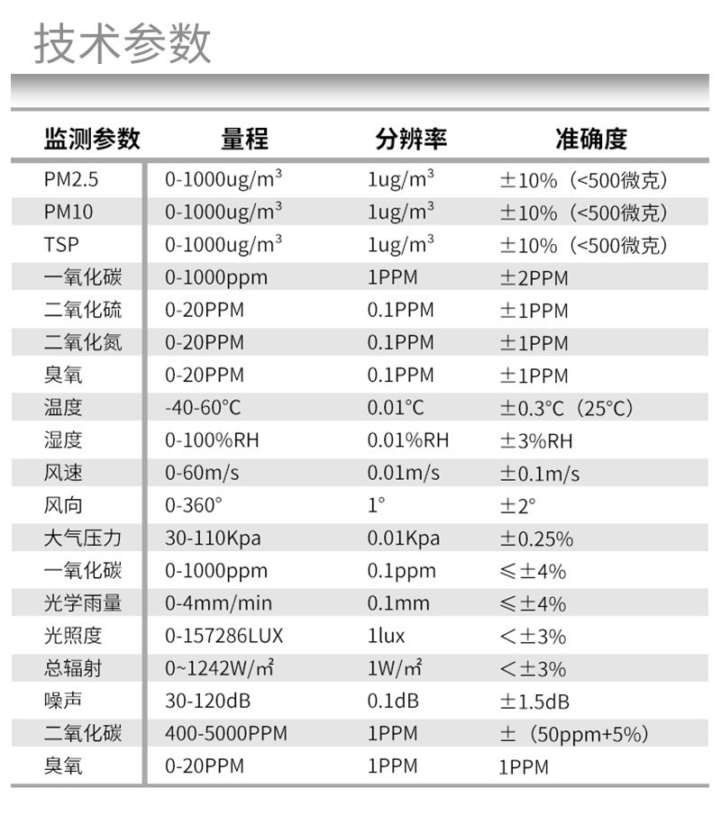 三、野外小型气象站技术参数