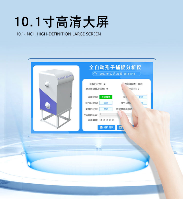 8.孢子捕捉仪内置10.4寸高清大屏显示,windows操作系统,具有良好的人机交互界面。支持本地查看拍摄照片、配置设备参数、控制设备等功能