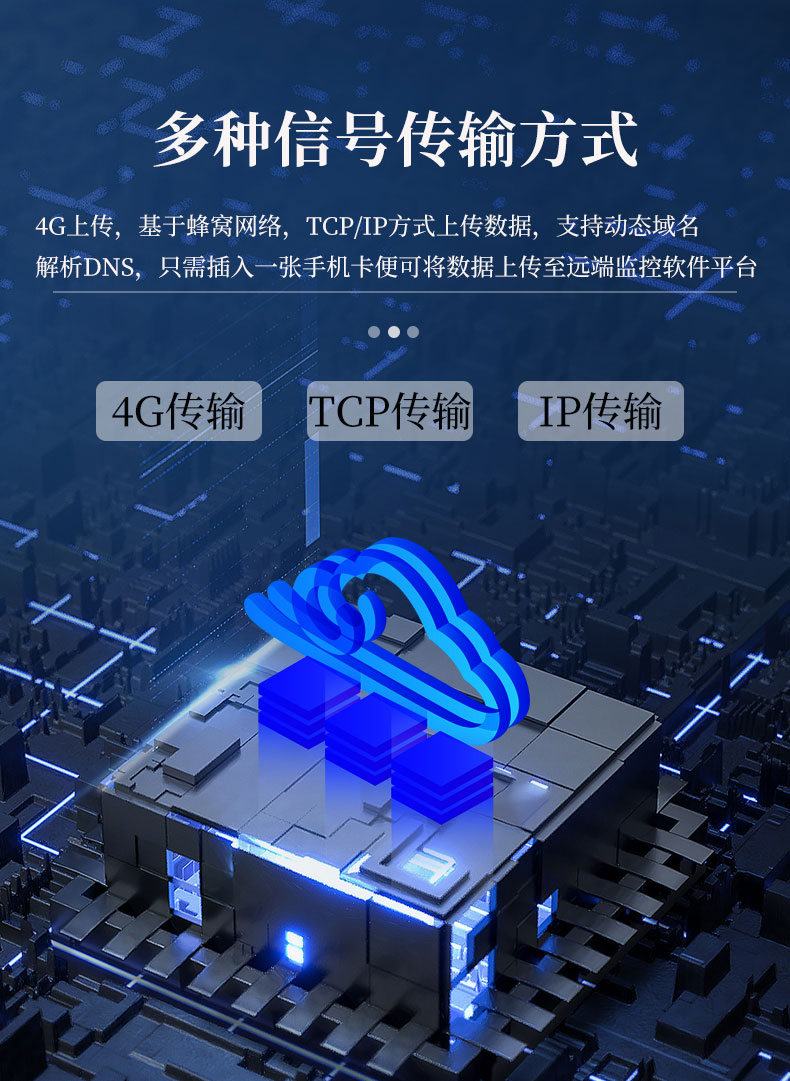 4.通信方式:4G上传,基于蜂窝网络,TCP/IP方式上传数据,支持动态域名解析DNS,只需插入一张手机卡便可将数据上传至远端监控软件平台