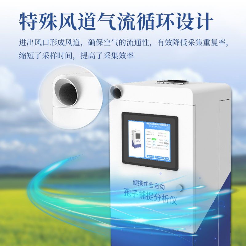 6.经过特殊风道气流循环设计,进出风口形成风道,确保空气的流通性,有效降低采集重复率,缩短了采样时间,提高了采集效率,单次采样可设置吸气口采样时间。