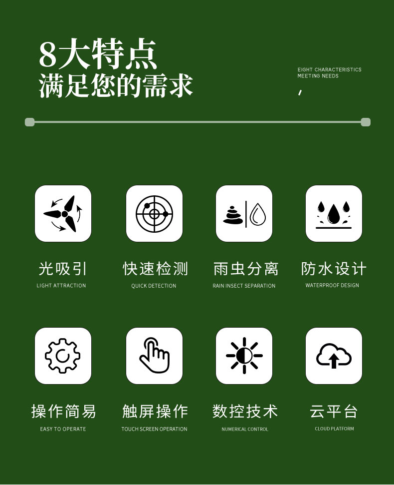 1.满足GB/T 24689.1-2009植物保护机械虫情测报灯标准中安全要求和技术要求。