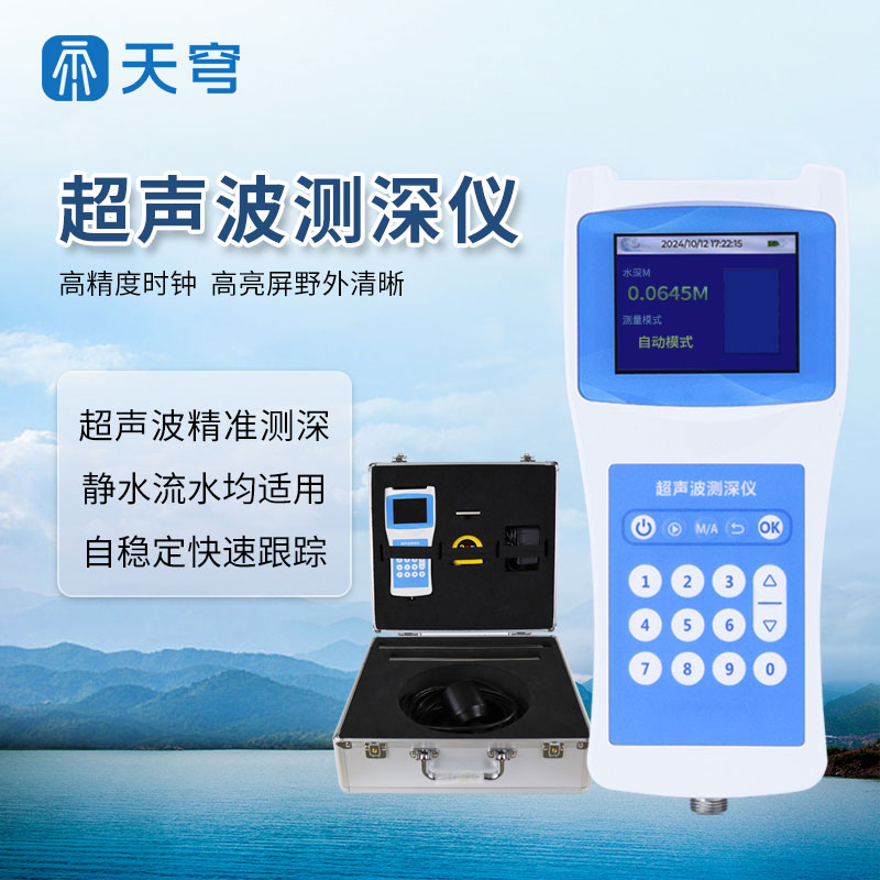 水深水温测量仪是测量水库、湖泊、江河、浅海等水体的便携式测深仪,测深时将超声波换能器置于水面下一定位置,利用超声波在水中的固定声速VC和超声波发射到接收的时间T,仪器自动换算出水深H。本品是我司积累多年生产经验,吸取了多种同类产品优点,而开发的一款方便适用的手持式超声波测距仪表。超声波收发转换电路采用专用大规模集成电路,元件贴片率99%,并以液晶显示测深结果,保证了产品的长期可靠性,同时将其功耗降到了极低。具有测量精确、功耗低、可靠性高、使用方便、操作简单、测量速度准确、携带方便等优点。仪器可在静水中测深,也可在具有一定速度的水中测深;水流速度≤5m/秒,是水文测验、水电厂库区、湖泊、河道勘测和环境水域监测的理想水深测量仪器。
