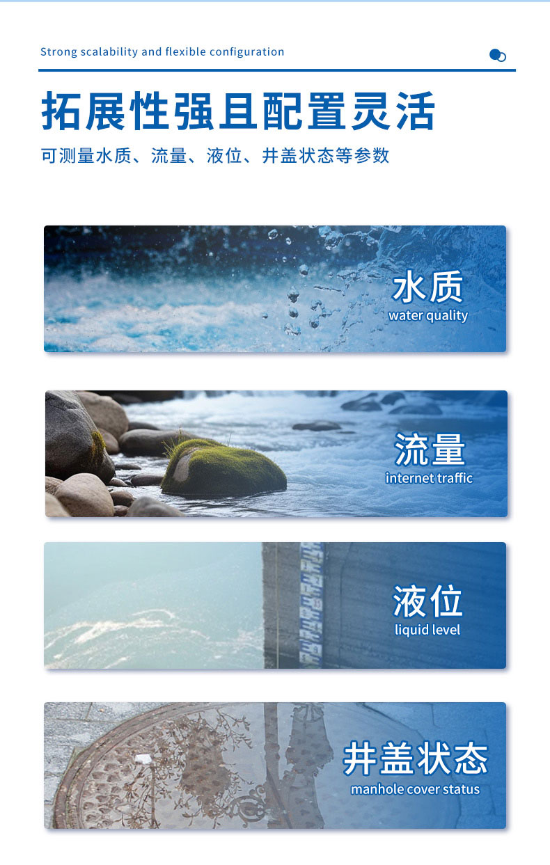 城市管网水质监测系统通过4G直接透传至指定服务器,支持MQTT协议透传Json数据。