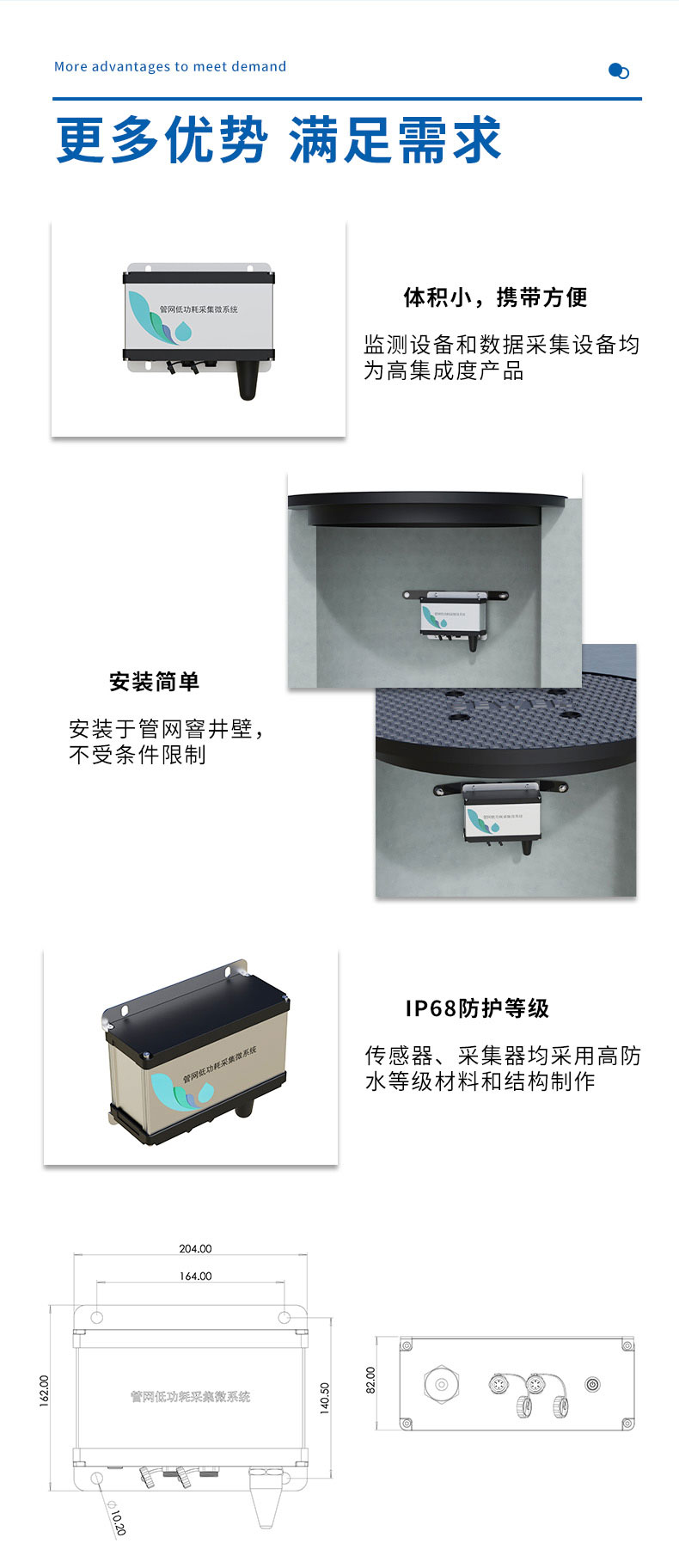 2、IP68级防水,管道涨水也无需担心。
