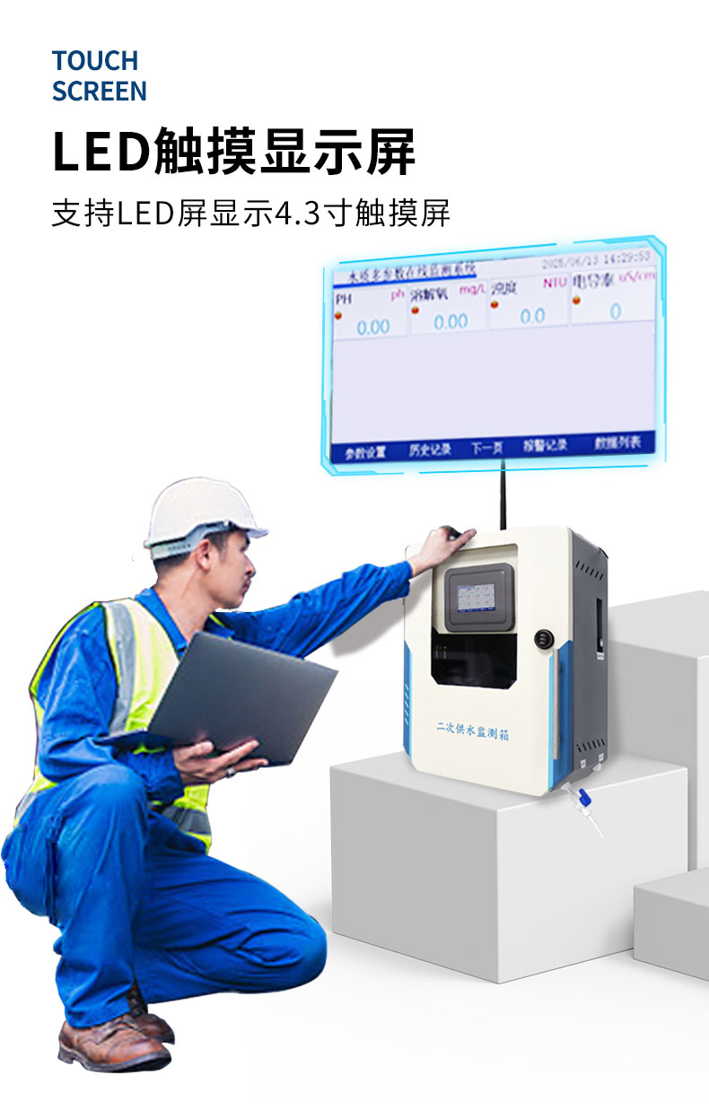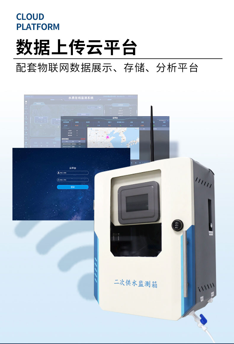 二次供水水质监测微系统是基于物联网技术的综合传感器采集、显示、历史曲线,供水水质监测微系统,由稳流排气单元、分析监测传感器单元、系统控制单元和远程通讯单元等组成,具备完善的供电、网络通讯、数据云端实时观测分析等功能。