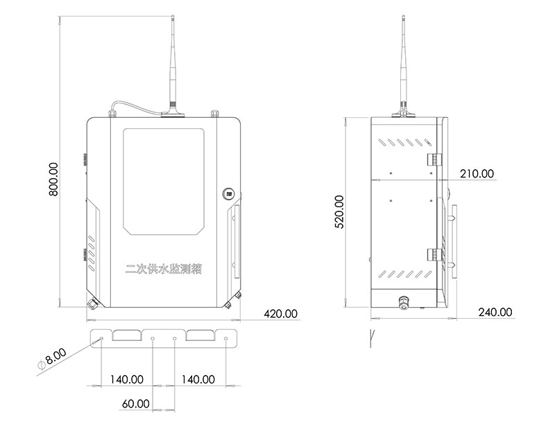 | 外形尺寸 | 520X240X210mm(不含外置通讯天线)含天线总高800mm |