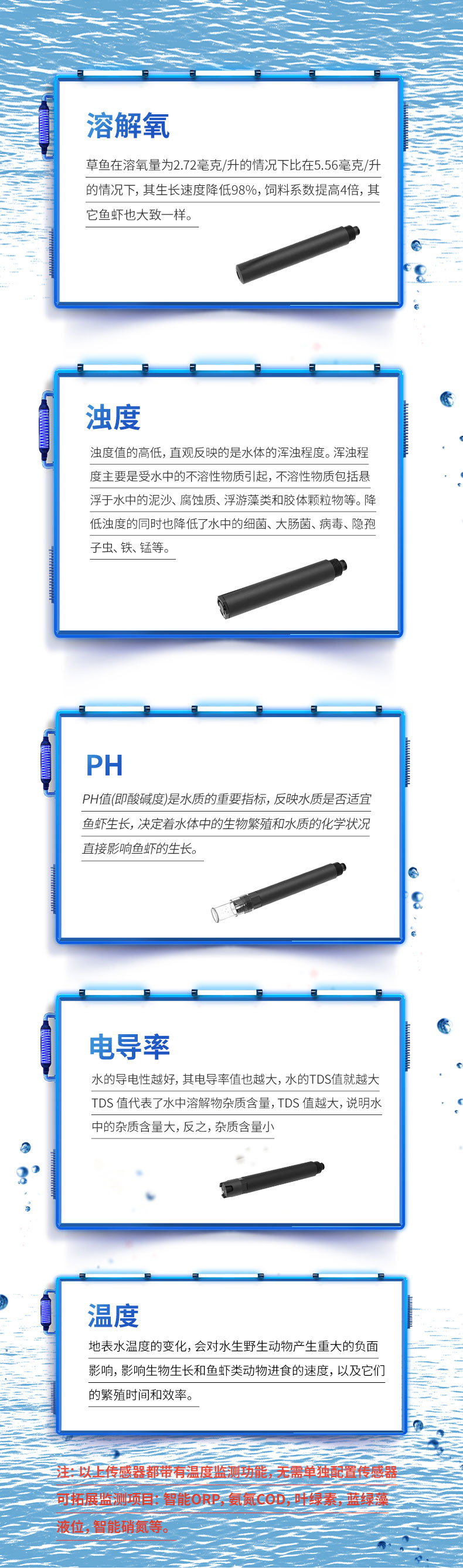 | S7 | 电导率 | 0~10000uS/cm | 接触式电极法 | ±1.5%;±0.1°C | 1uS/cm | √ | 带温补 |