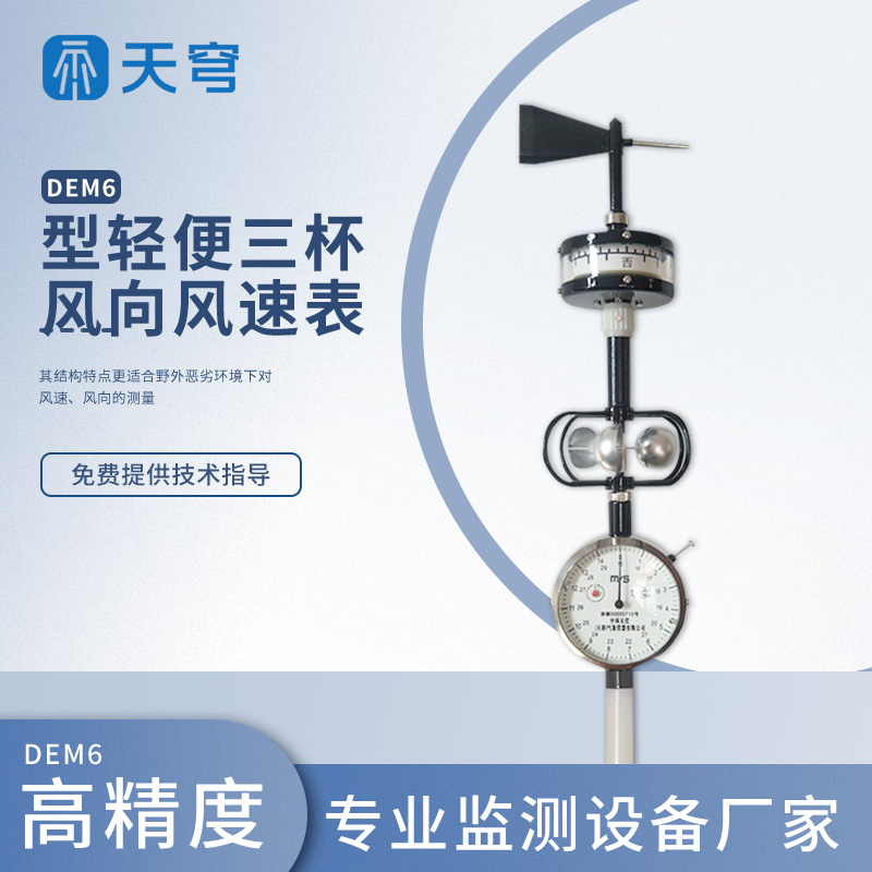 【产品简介】DEM6型轻便三杯风向风速表概述DEM6型轻便三杯风向风速表用于测量风向和一分钟时间内平均风速。适用于气象、水文、矿山及野外考察。特别适合于野外恶劣环境下对风速、风向的测量。技术参···