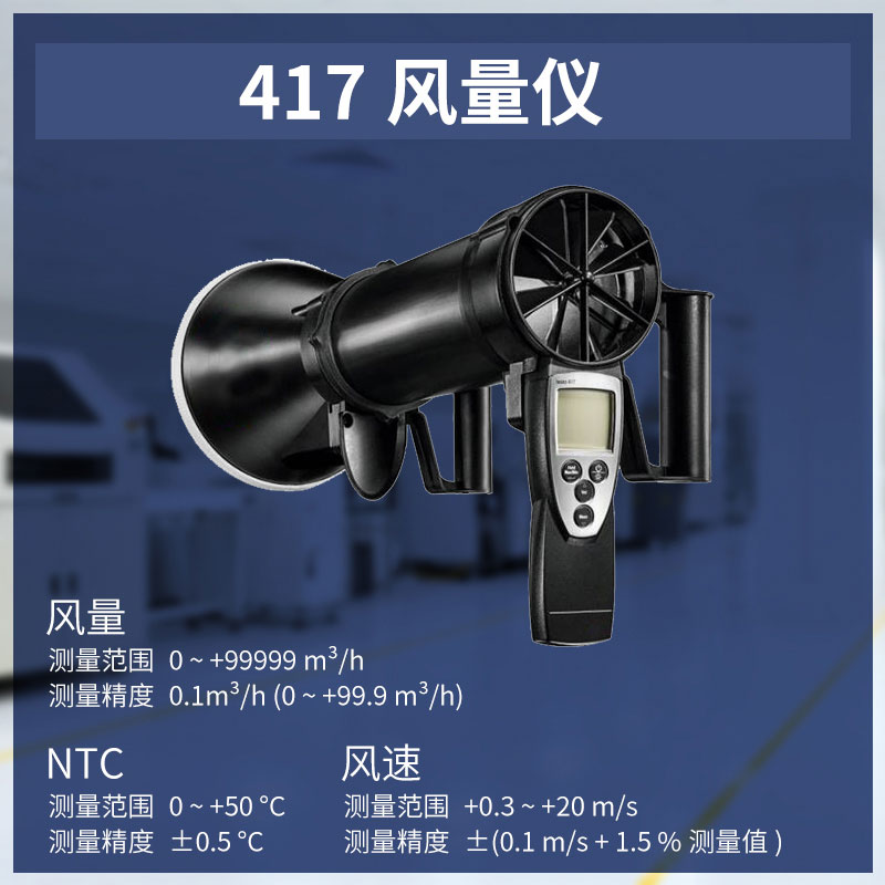 【产品简介】一、风量罩风速仪产品简介风量罩风速仪配置一体式叶轮风速/温度探头,直径100mm,测量风速、风量和温度。直接显示体积流量。只需输入管道的截面积,即可精确计算出流量。可以快速切换至当···