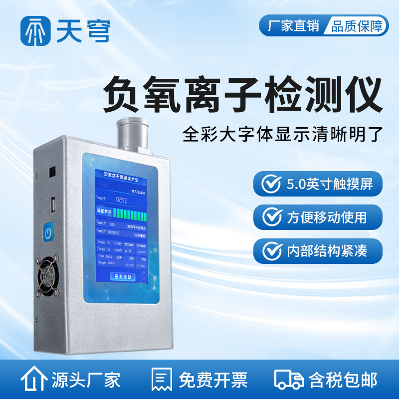1、屏幕显示:5.0英寸电容触摸屏,800*480高分辨率,实时显示负(氧)离子测量结果;