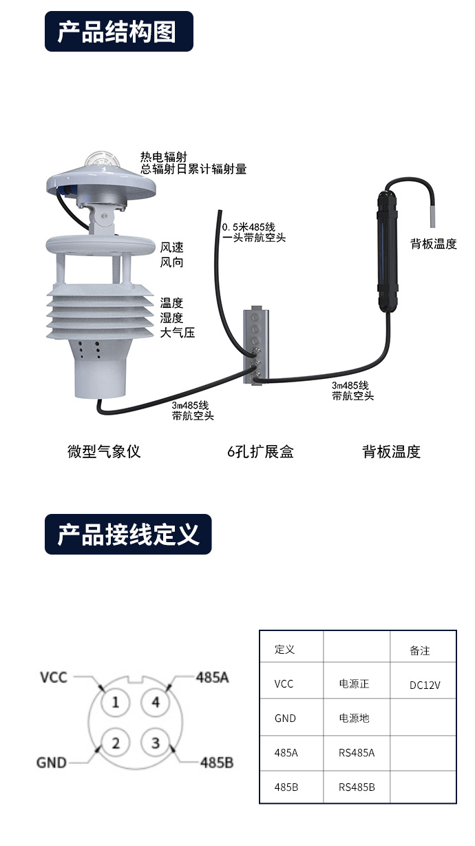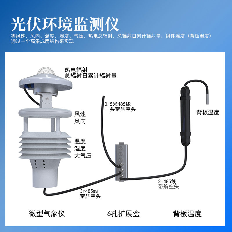 4、背板温度通过6孔扩展盒与微型气象仪并联,方便客户现场安装调试