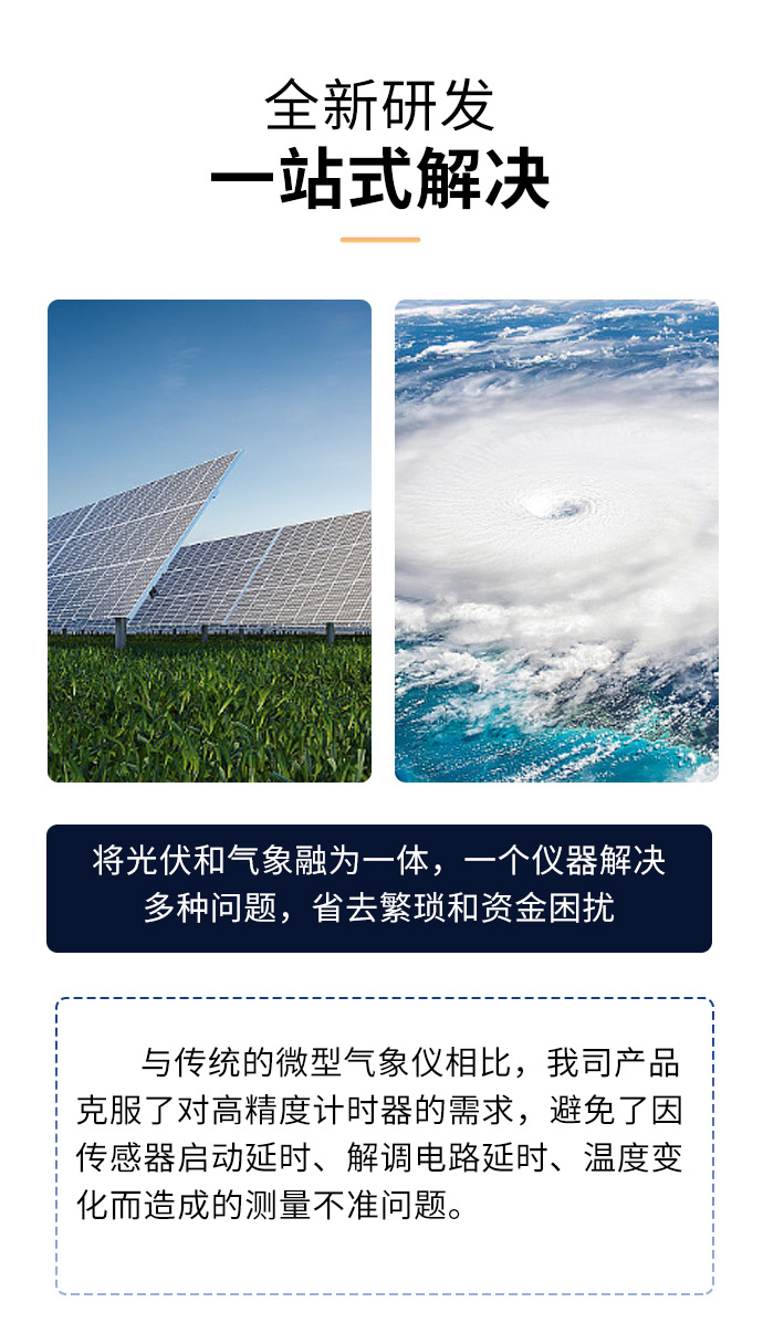 【产品简介】一、分布式光伏环境监测仪产品简介我司作为专业研发生产销售微型气象仪的企业,一直致力于微型气象仪和气象环境解决方案推广应用。具有完整的生产链、实力雄厚的技术团队和全面的营销团队,我们···