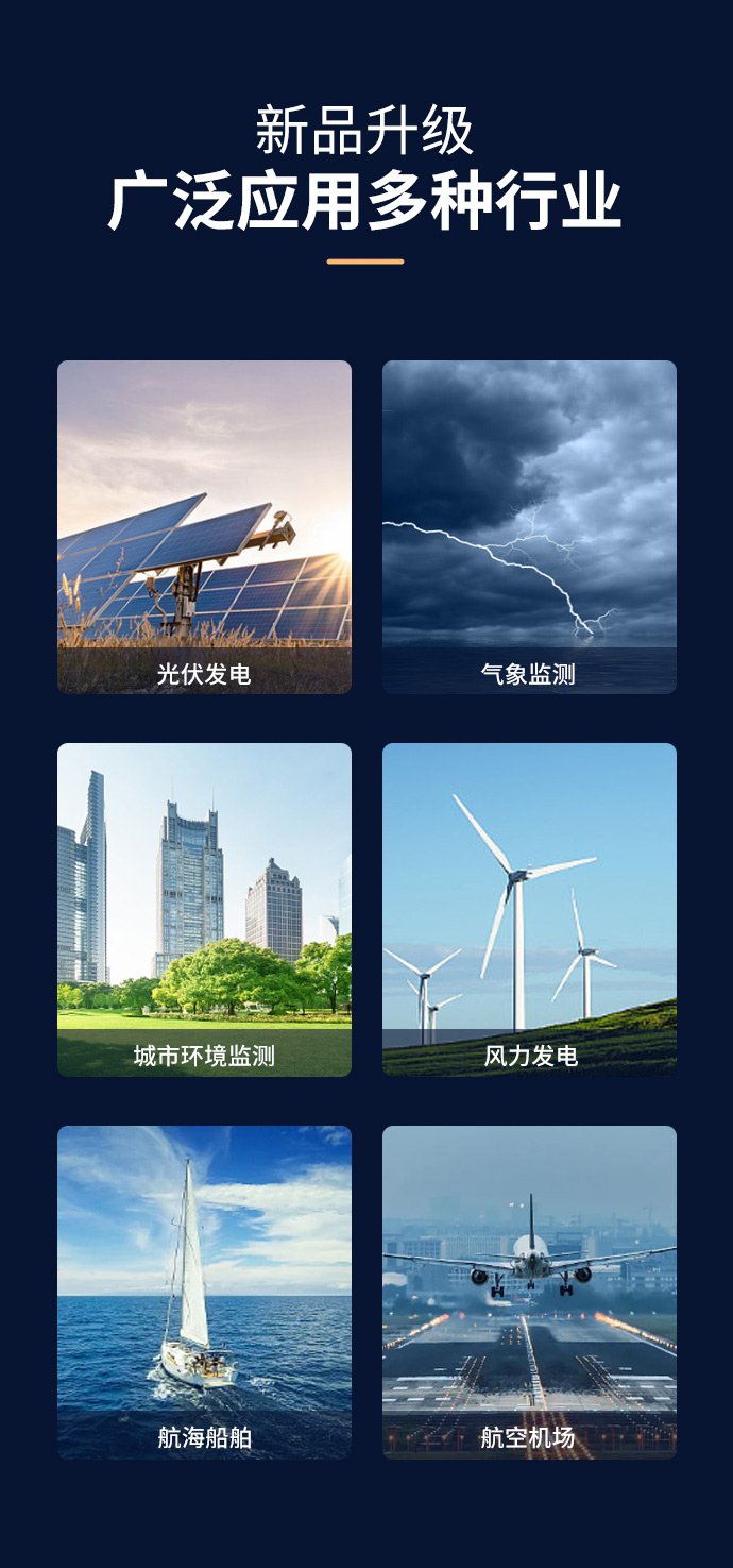 2、风向:测量原理超声波,0~360°(±2°);分辨率:1°;