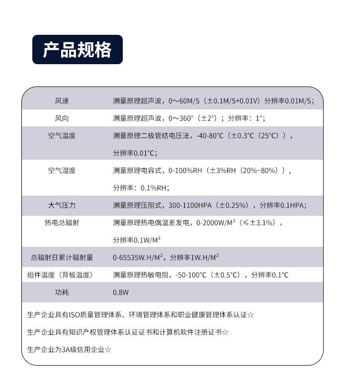 三、分布式光伏环境监测仪技术参数