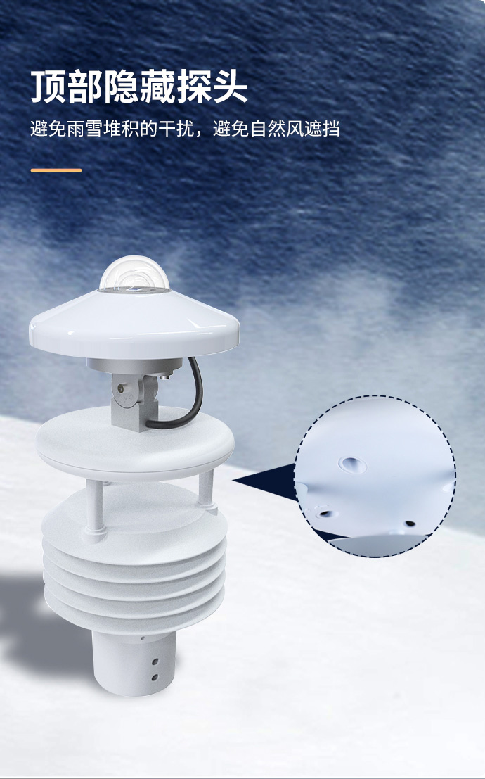 1、顶盖隐藏式超声波探头,避免雨雪堆积的干扰,避免自然风遮挡