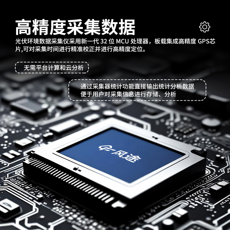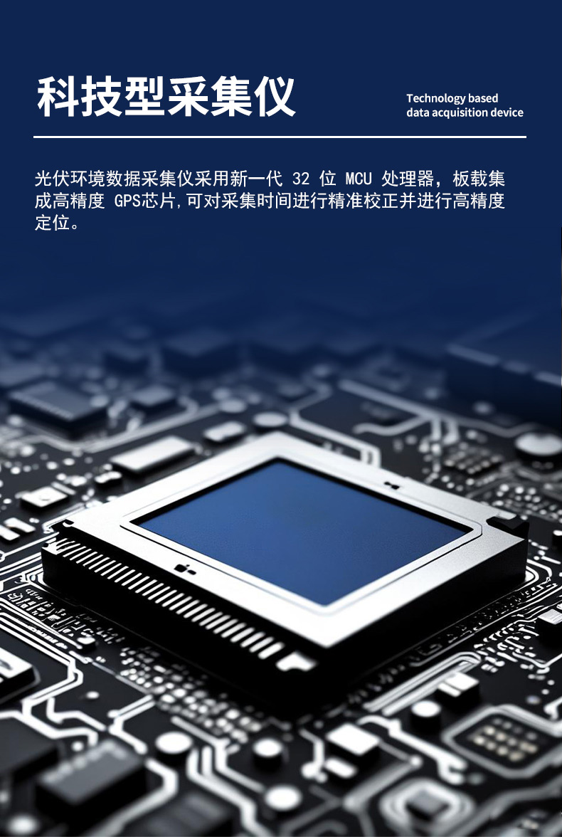 2、科技型采集仪:光伏环境数据采集仪采用新一代32位MCU处理器,板载集成高精度GPS芯片,可对采集时间进行精准校正并进行高精度定位。