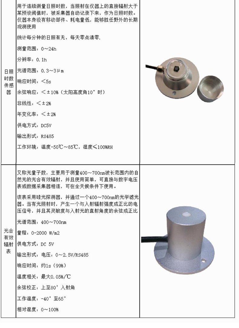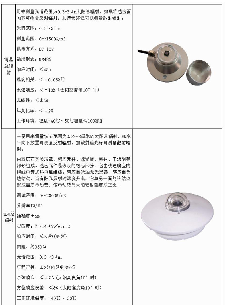 三、太阳辐射观测站传感器参数