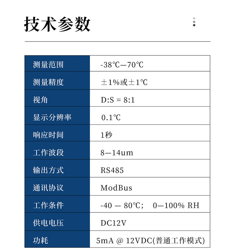 | 功耗 | 5mA @ 12VDC(普通工作模式) |