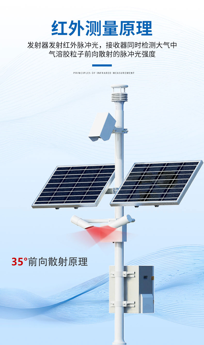 1.能见度仪:由光发射器、光接收器及微处理控制器等主要部件组成。发射器发射红外脉冲光,接收器同时检测大气中气溶胶粒子前向散射的脉冲光强度,所有测量信息由微处理控制器搜集并通过专门的数学模型算法转化为气象光学视程Meteorological Optical Range(MOR)