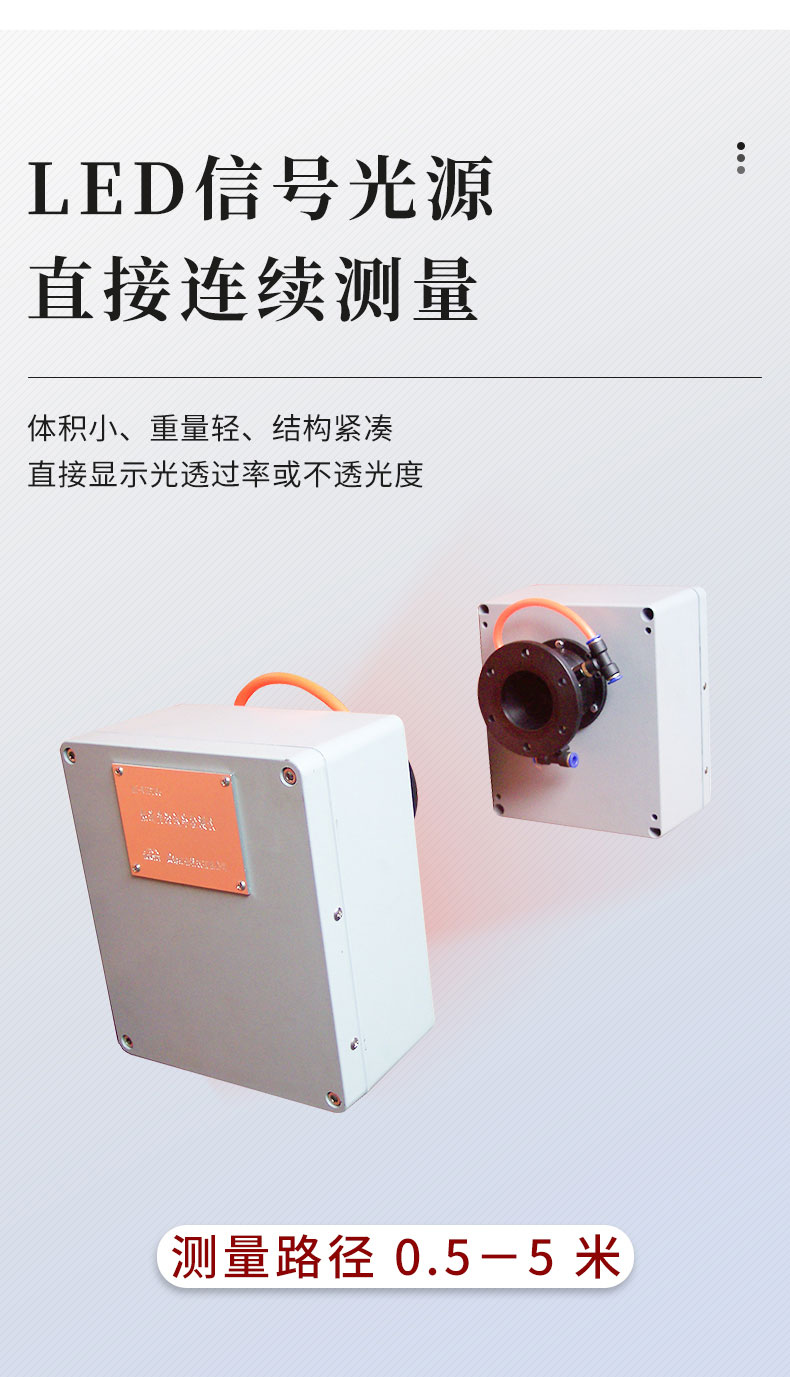 【产品简介】一、烟道粉尘透过率检测仪测量原理检测光横穿烟道,单光路测量系统,由发射器、接收器两部分组成。发射器中安装有一个高亮度LED光源, 它发射出光束通过扩散器后通过烟道,投射到接收器内的···