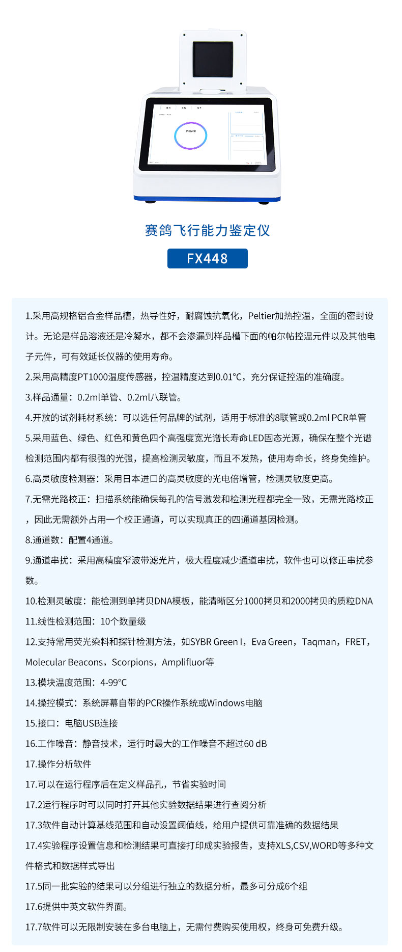 | 分析功能 | 具多重qPCR数据分析功能,可同时检测4个检测通道 |
