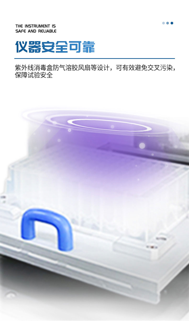 紫外线消毒盒防气溶胶风扇等设计,可有效避免交叉污染,保障试验安全。