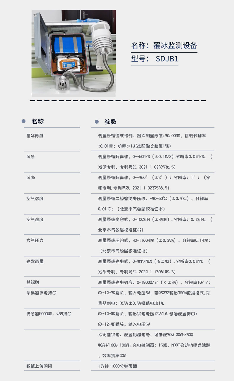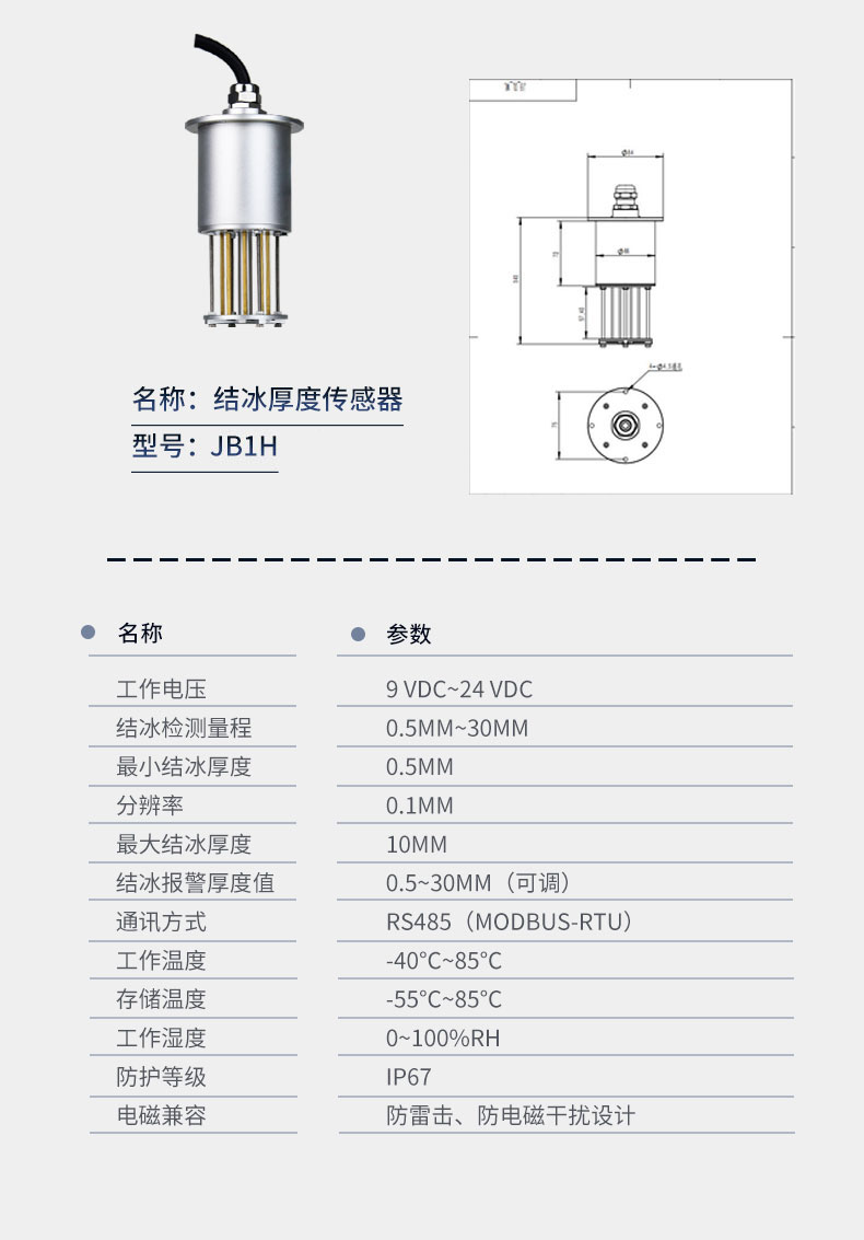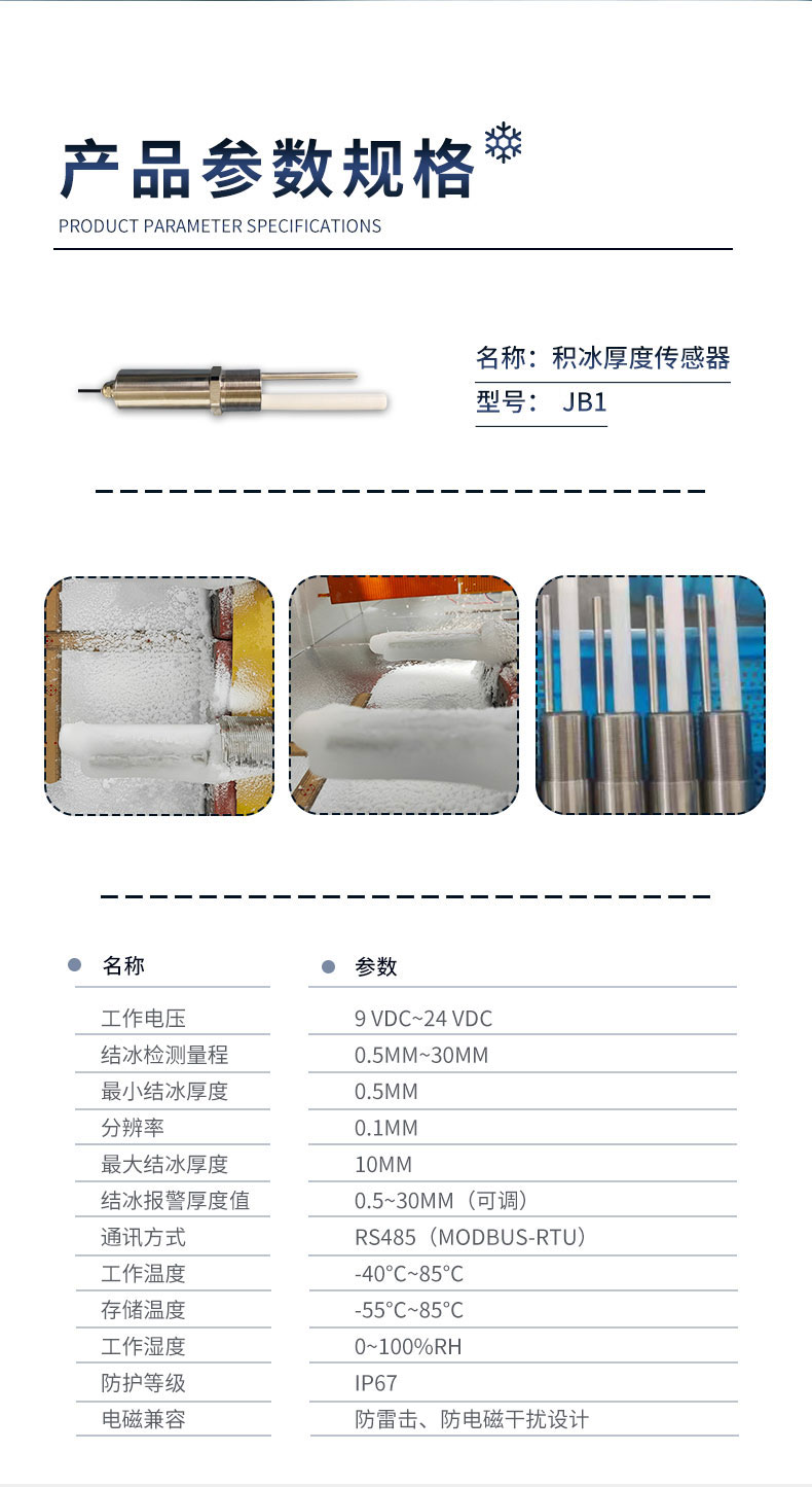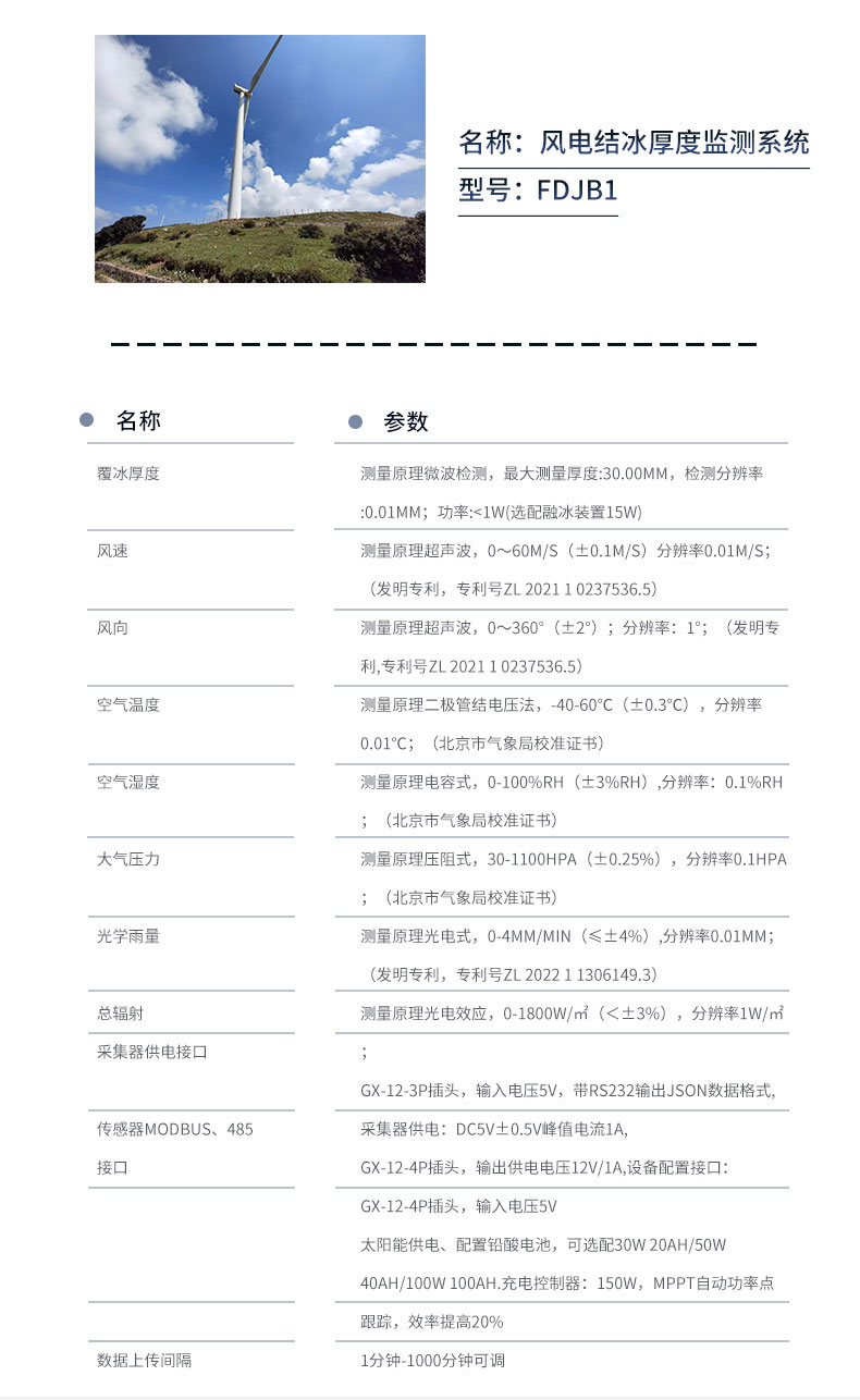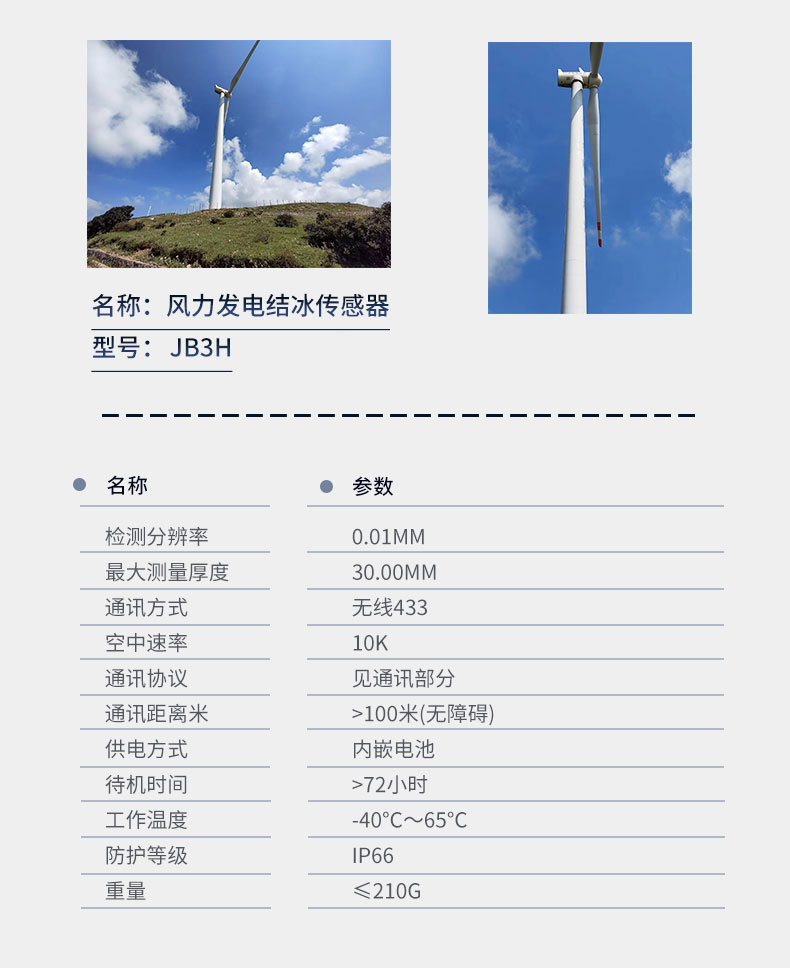 【产品简介】一、风电叶片积冰传感器产品简介风电叶片积冰传感器采用微波检测技术,基于微波信号对冰、水、空气等不同物质的反馈信息的区别实现对传感器敏感区域的结冰信息的监测,并根据信号的强弱以及传感···