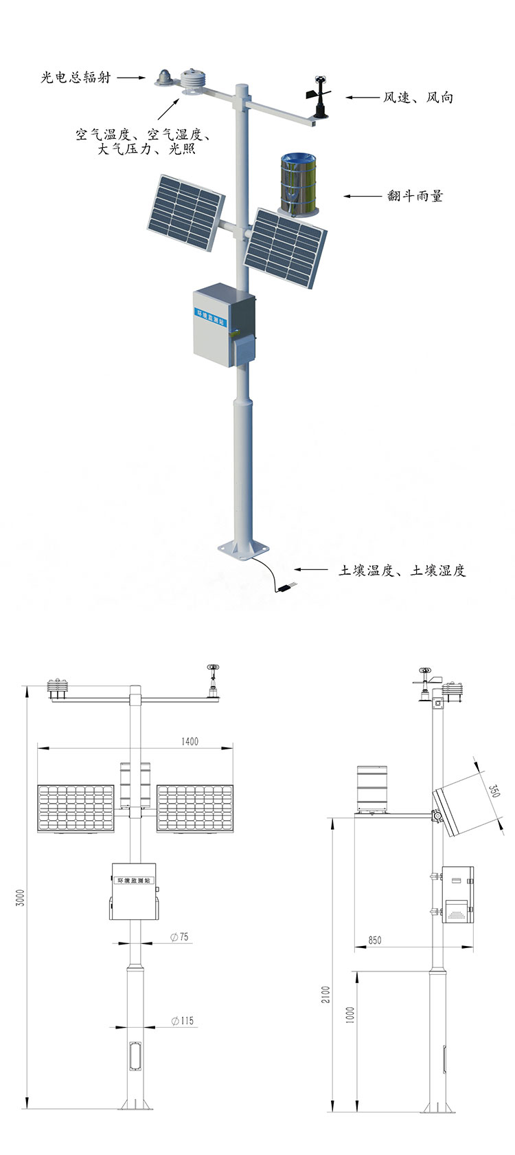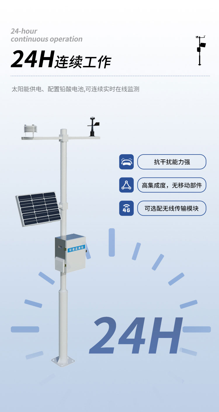 该设备由气象传感器,采集器,太阳能供电系统,立杆支架,云平台五部分组成。免调试,可快速布置,广泛运用于气象、农业、林业、环保、海洋、机场、港口、科学考察、校园教育等领域。