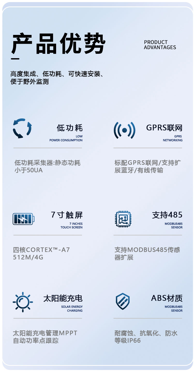 | 土壤温度 | -30~+70℃ | 0.01℃ | ±0.3(-10~70℃) |