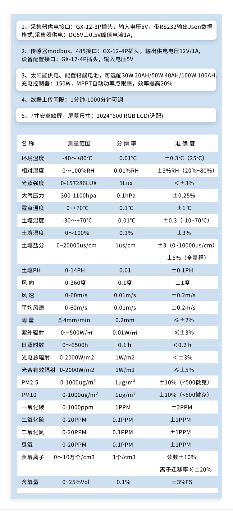 三、小型气象站技术参数