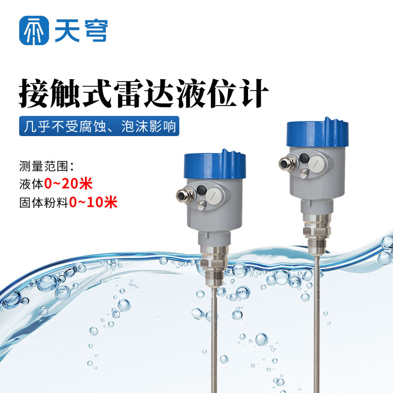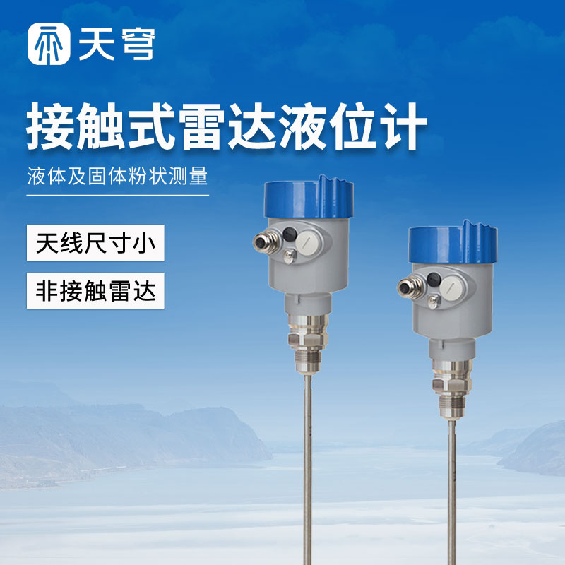 【产品简介】一、接触式雷达液位计产品原理导波雷达发出的高频微波脉冲沿着探测组件(钢缆或钢棒)传播,遇到被测介质,由于介电常数突变,引起反射,一部分脉冲能量被反射回来。发射脉冲与反射脉冲的时间间···