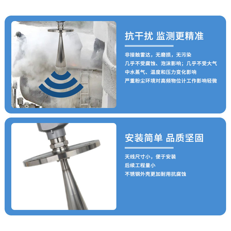 天线尺寸小,便于安装;非接触雷达,无磨损,无污染。