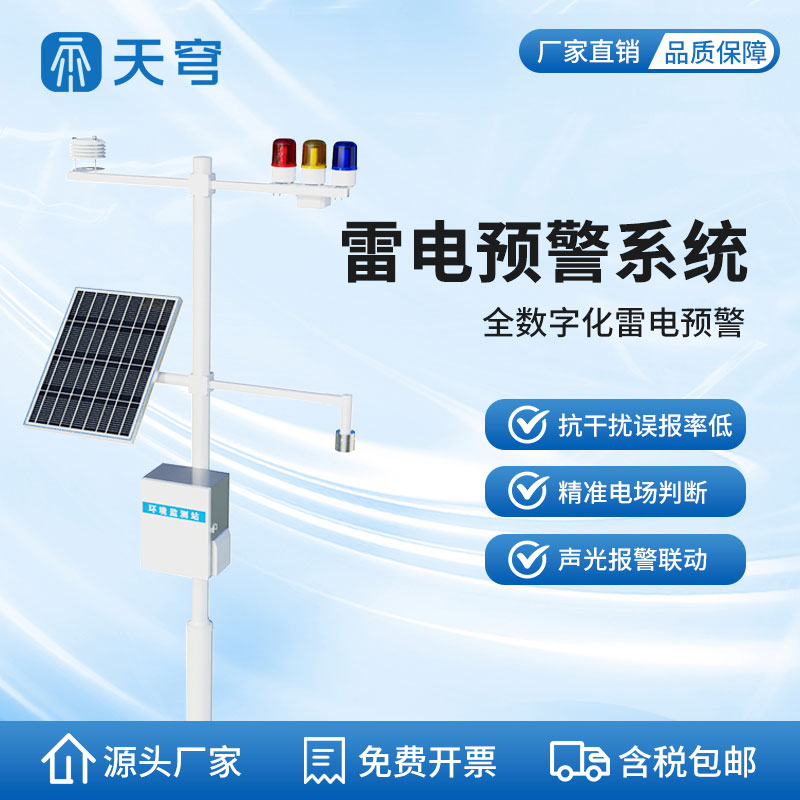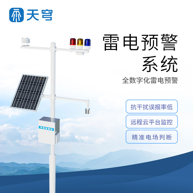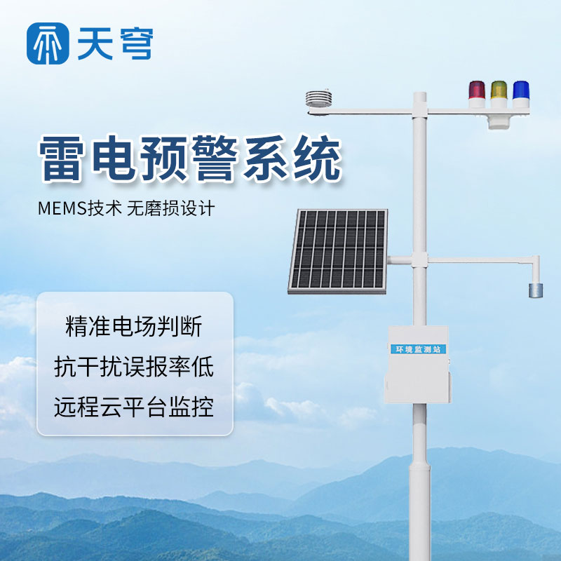 雷电预警系统是全数字化电场探测与雷电预警平台,其核心电场探测结构基于电荷感应原理、采用MEMS(微机电系统)技术研制,无电机等易磨损可动机械部件,具有体积小、功耗低、可靠性高、易于集成等突出优点。该系统采用电场微分结合门限阈值优化雷电预警算法,与常规采用的门限阈值方法相比较,大概率规避人为干扰(雨天/大风/雪天/扬尘)等引起的误报问题,进一步提高了预警的准确度。雷电预警系统预警准确、便于组网、安装方便,主要面向航天国防、气象、石油石化、电网、景区、矿山、油库、军事等领域大气电场探测和雷电局域短时预警的应用需求。