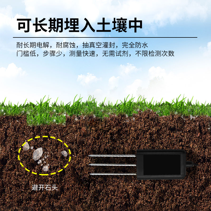4.完全密封,耐酸碱腐蚀,可埋入土壤进行长期动态检测。