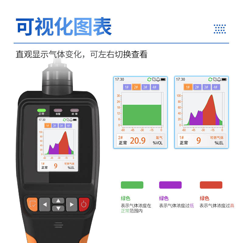 便携式气体检测仪采用泵吸方式检测气体,敏感元件采用优质气体传感器,具有极好的灵敏度和出色的重复性,使用和维护方便,极大的满足了工业现场安全监测对设备可靠性的要求。