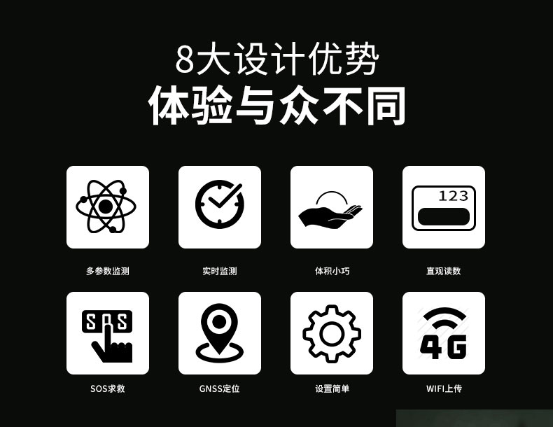 并具备户外的SOS求救、电子罗盘、跑道温度、未来3小时天气预报、人体舒适度、无线电静默、GNSS定位等功能。