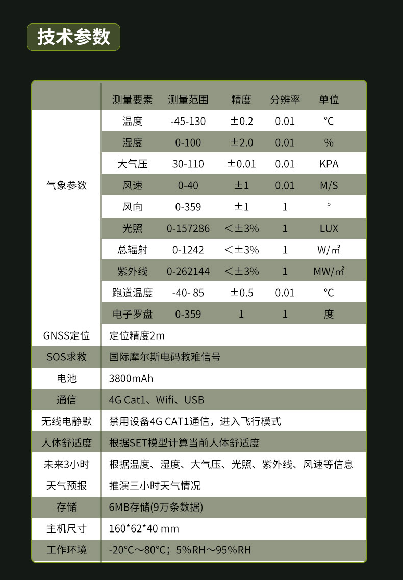 二、袖珍手持气象仪技术参数