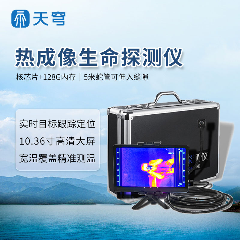 热成像生命探测仪由高分辨率热成像传感器、高灵敏音频探头和高性能图形处理主机组成探测系统,热成像传感器采用小巧、轻便设计,并通过5米蛇管与主机相连,音频传感器集成于探头中,使其成为一款非常适用于搜索、救援的设备,可用于狭窄空间、黑暗环境复杂环境,对具有生命体征的事物可提供非常直观的图形影像,同时也可获得视距之外的音频信号。