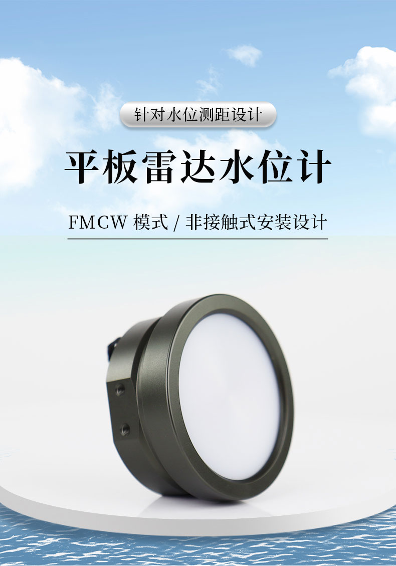 平板雷达水位计是专门针对水位测距设计的,该模块采用FMCW模式,非接触式安装设计,体积小巧,结构紧凑。精度高,功耗低,抗干扰能力强,适用于湖泊河流、山洪预警、蓄水池、污水管网等水位监测。