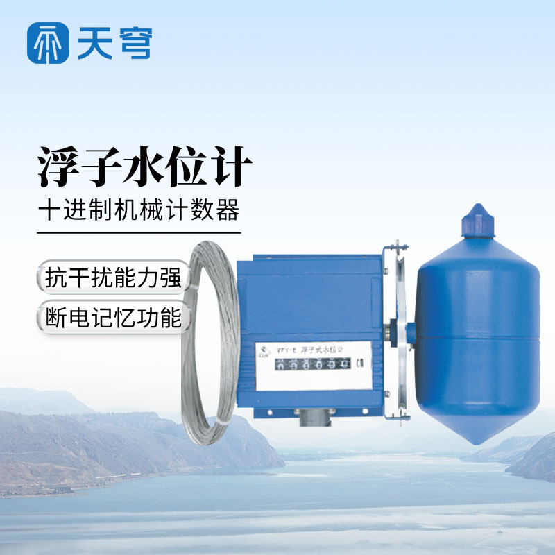 工作原理为:仪器以浮子感测水位变化,工作状态下,浮子、重锤与钢丝绳连接牢固,钢丝绳悬挂在水位轮的“V”形槽中。平衡锤起拉紧钢丝绳和平衡作用,调整浮子的配重可以使浮子工作于正常吃水线上。在水位不变的情况下,浮子与平衡锤两边的力是平衡的。当水位上升时,浮子产生向上浮力,使平衡锤拉动钢丝绳带动水位轮作顺时针方向旋转,水位传感器的显示读数增加;水位下降时,则浮子下沉,拉动钢丝绳带动水位轮逆时针方向旋转,水位传感器的显示器读数减小。