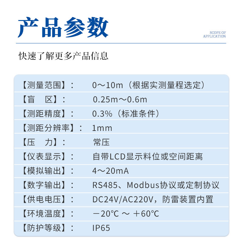 2、超声波液位计技术指标