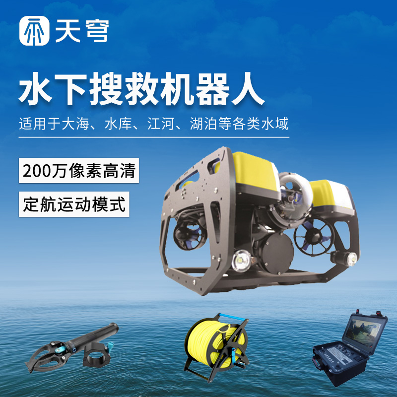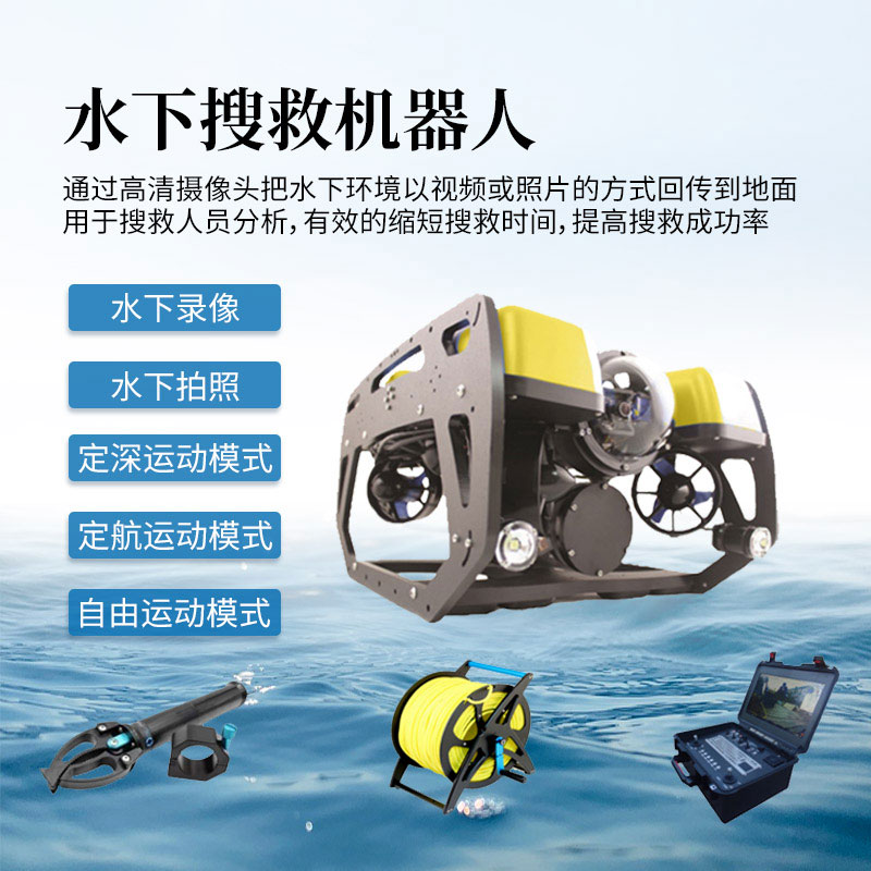 水下搜救机器人用于水下搜救、水下探测、水下观察;水下搜救机器人通过高清摄像头把水下环境以视频或照片的方式回传到地面用于搜救人员分析,有效的缩短搜救时间,提高搜救成功率;适用于大海、水库、江河、湖泊等各类水域。
