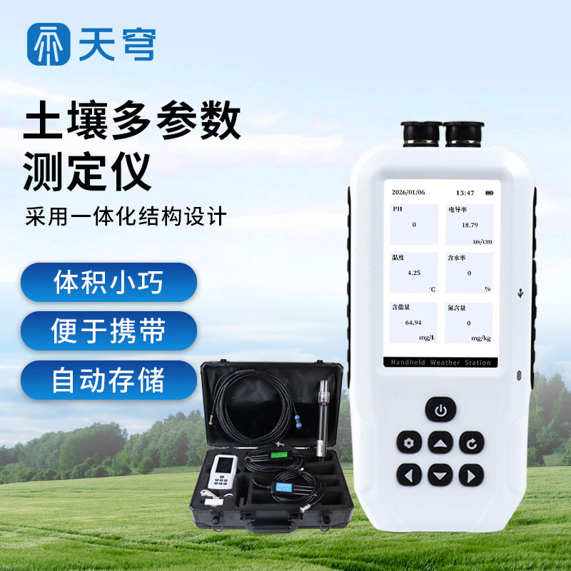 【产品简介】一、土壤温湿度电导率含盐量PH氮磷钾测定仪产品简介土壤温湿度电导率含盐量PH氮磷钾测定仪是一款高度集成的多功能环境监测设备,采用一体化结构设计,能够快速、准确地测量土壤中的含水量、···