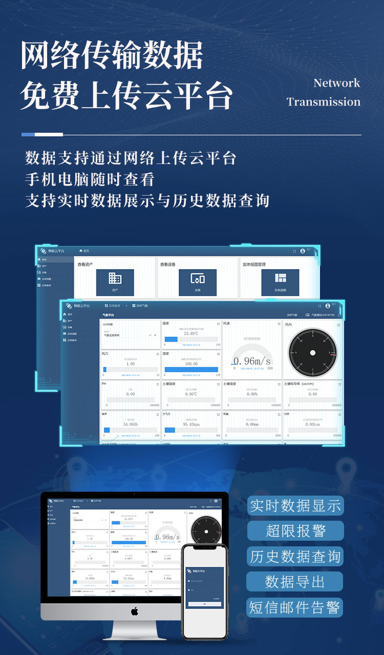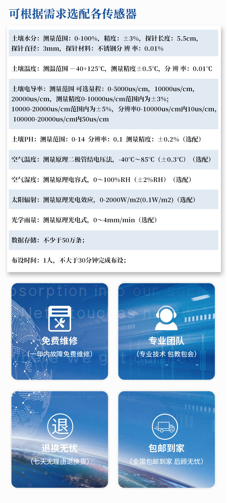 2)土壤温度:测温范围-40+125℃,测量精度±0.5℃,分辨率:0.01℃
