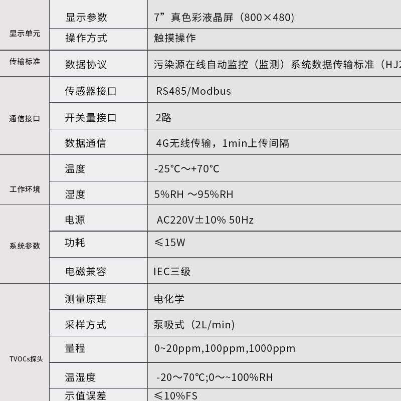 三、VOC在线监测设备产品参数