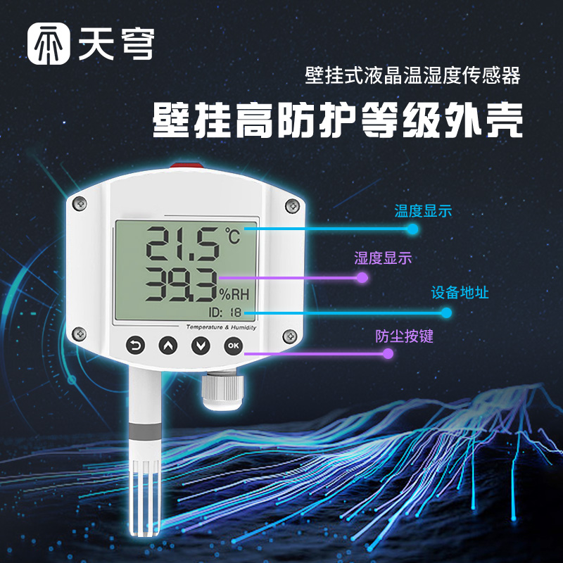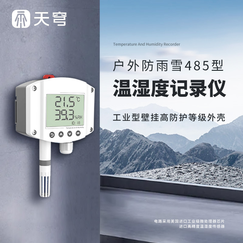 温湿度记录仪为工业型壁挂高防护等级外壳,防护等级IP65,防雨雪且透气性好。电路采用美国进口工业级微处理器芯片、进口高精度温湿度传感器,确保产品优异的可靠性、高精度和互换性。输出信号类型为 RS485,最远可通信 2000 米,标准的 modbus协议,支持二次开发。